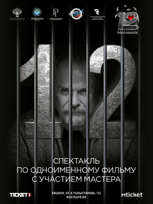 «12» — спектакль-размышление о том, что такое свобода, сострадание, способность помочь совершенно постороннему человеку, оказавшемуся в беде; серьезный разговор о том, что волнует сегодня каждого. В спектакле заняты народные артисты России Никита Михалков, Николай Бурляев и Сергей Степанченко, заслуженный артист России Владимир Долинский и другие.