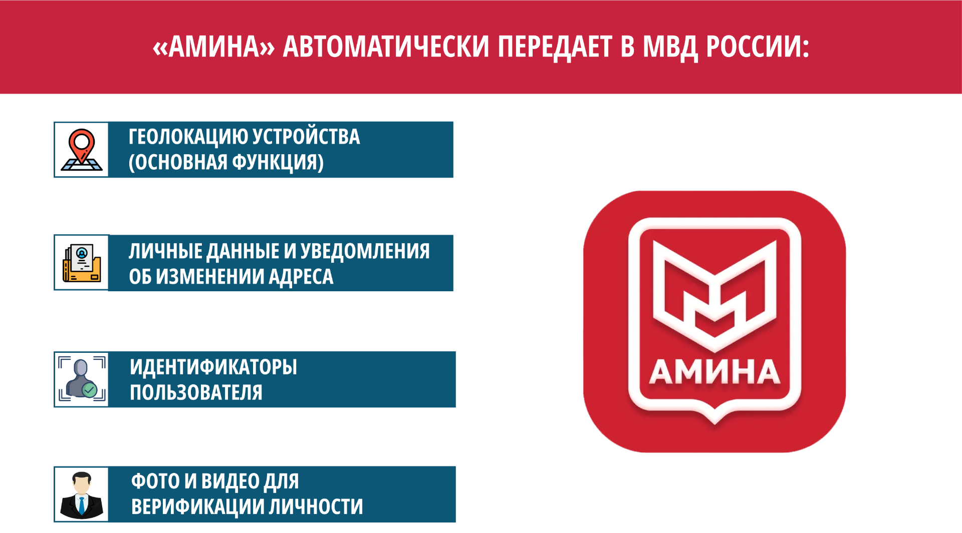 «Амина» автоматически передает в МВД России: