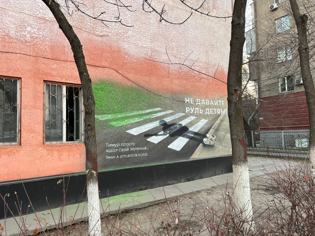 В Бишкеке на стене школы № 24 появился мурал в память о погибшем в дорожно-транспортном происшествии ученике Тимуре. Об этом 24-kg.com сообщил автор работы Валерий Катревич.