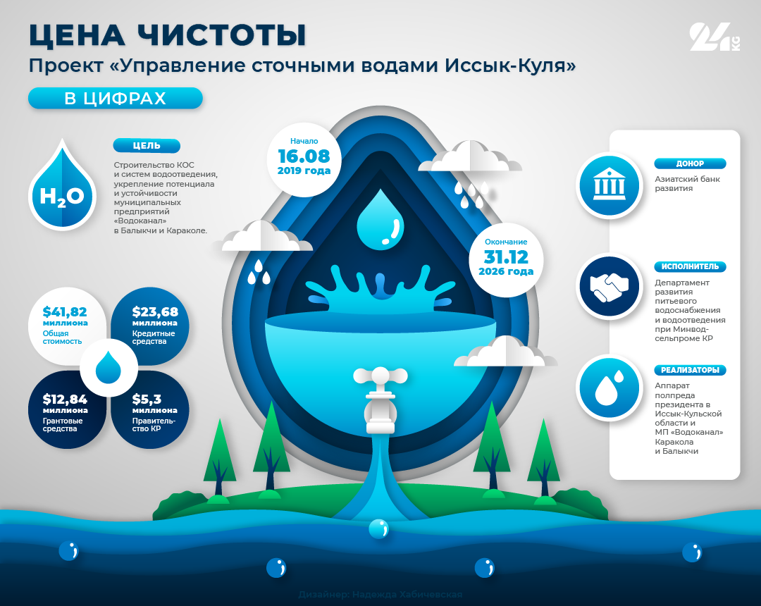 По словам руководителя данного проекта Сабырбека Омурканова, в Балыкчи очистные сооружения доделали, и они находятся на годовом обслуживании у подрядчика. После объект официально передадут муниципальному предприятию «Водоканал».