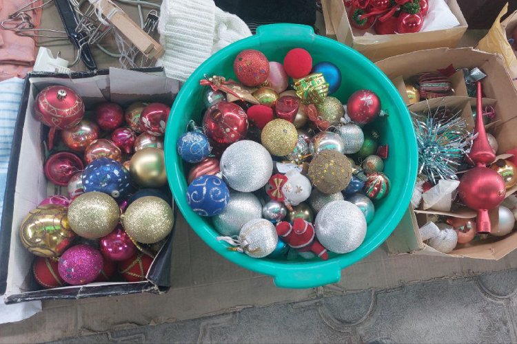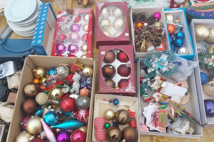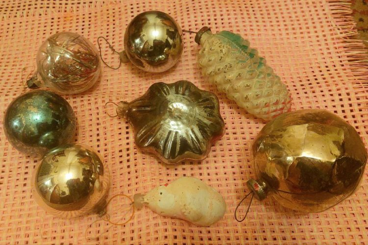 На блошиных рынках Бишкека можно найти игрушки как современные, так и эпохи СССР. Цены разнообразные. Обычная китайская пластиковая шишка стоит от 30 сомов за штуку, а советская из стекла — от 300 сомов и выше. Дело вкуса.