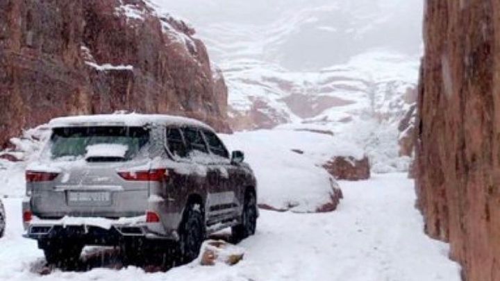 В горных районах Табука и Хаиля, в частности близ горы Джэбаль-эль-Лауз, снегом покрылись обширные территории. Редкой возможностью покататься на лыжах, санях и просто прогуляться по снегу воспользовались местные жители и гости региона, чьи видео быстро стали вирусными в социальных сетях.