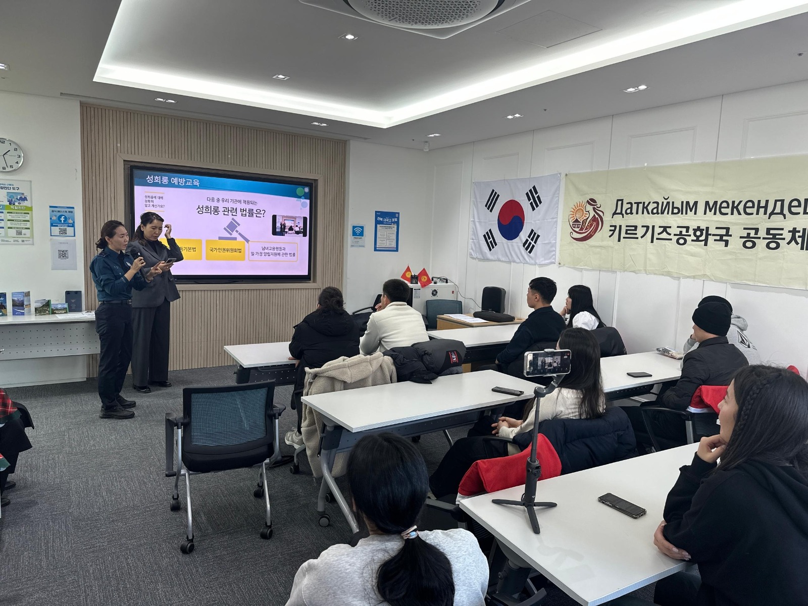В ходе встречи была проведена разъяснительная работа по вопросам профилактики преступности, экстремизма, терроризма, незаконного оборота наркотических средств и киберпреступности. Участникам также разъяснили механизмы обращения и взаимодействия с компетентными органами Южной Кореи в случаях совершения преступлений в отношении граждан Кыргызстана.
