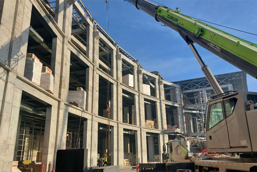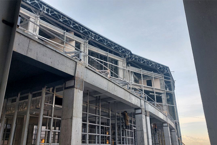 По данным строителей, в блоках № 1–5 полностью завершены монолитные работы, сейчас там прокладываются инженерные коммуникации. На территории зеленого рынка (блок № 6) завершается монтаж металлоконструкций, а в секциях № 6–8, 10–11 и 15–20 кровельные, монолитные и инженерные работы находятся на высокой стадии готовности. В отдельных секциях инженерные сети выполнены почти полностью, продолжаются остекление и отделочные работы. Также завершены основные монолитные работы по переходам и заездам.