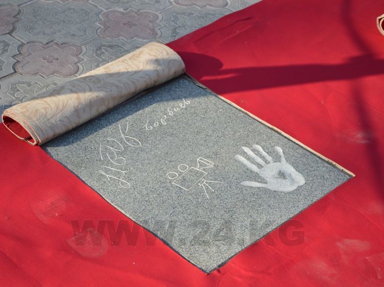 Фото 24-kg.com. Плита с отпечатком ладони Нуртая Борбиева в Бишкеке