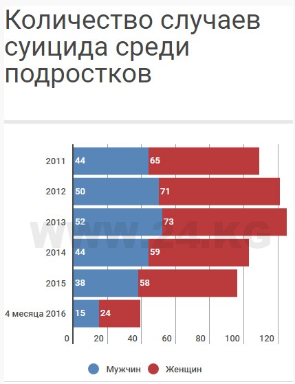 По словам начальника Инспекции по делам несовершеннолетних МВД КР Азамата Абдрахманова, статистика за 9 месяцев 2016-го по республике такова: в розыске находились 566 несовершеннолетних, в отношении 522 детей дела прекращены, то есть подростки найдены и возвращены родителям. На сегодня 44 ребенка (21 девочка и 23 мальчика) числятся пропавшими без вести.