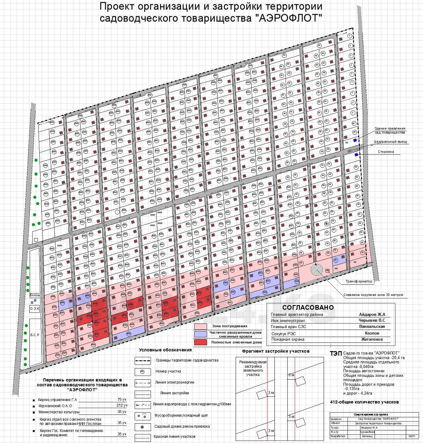 По данным Госагентства архитектуры, строительства и ЖКХ, участок планировалось застроить дачными домиками, а индивидуальное строительство было запрещено, так как территория входила в охранную зону взлетно-посадочной полосы, которая составляет 3 километра. Управление архитектуры Сокулукского района документов на строительство жилых домов не выдавало.