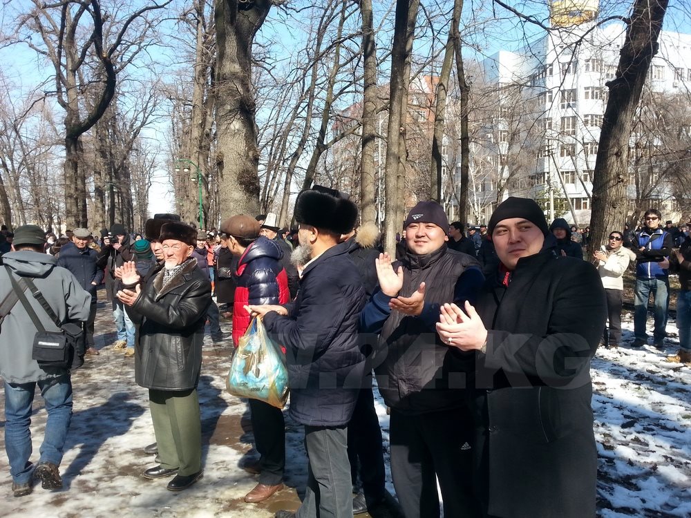 На акцию собрались его родственники, однопартийцам и сторонники. На митинге выступила и президент переходного периода Роза Отунбаева.
