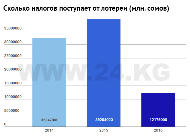 По итогам 2016 года выручка от продажи лотерейных билетов составила 948 миллионов сомов, участникам выплачено 848 миллионов. Согласно концепции законопроекта 50 процентов выручки уйдет в призовой фонд.
