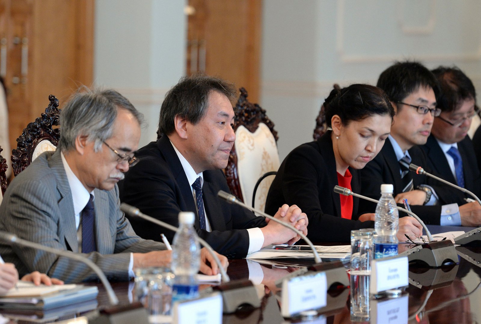 В рамках продвижения проекта «Таза коом» руководитель аппарата президента Кыргызстана Сапар Исаков встретился сегодня, 20 апреля, с вице-министром земли, инфраструктуры, транспорта и туризма Японии Такеши Мугишима, а также с руководством нескольких японских компаний.
