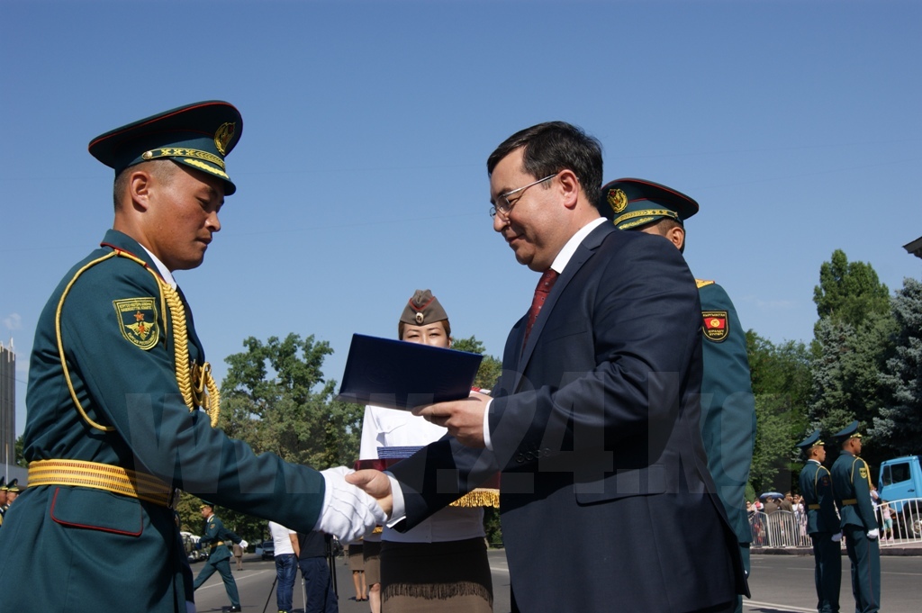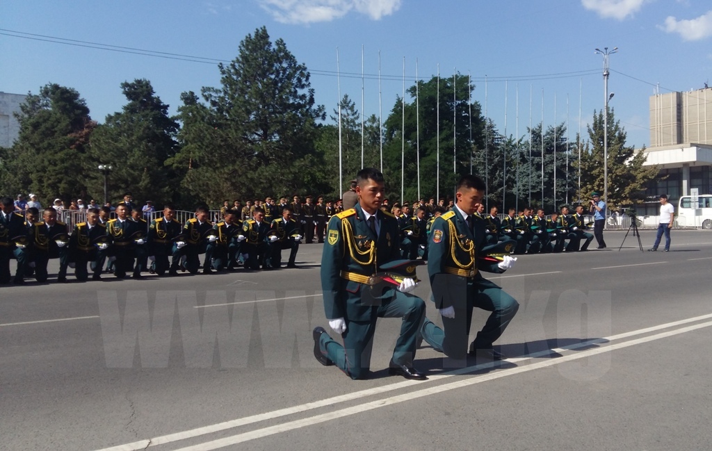 Сегодня в Бишкеке на Старой площади состоялось торжественное мероприятие, посвященное выпуску Военного института Вооруженных сил Кыргызской Республики имени Героя Совесткого Союза генерал-лейтенанта Калыйнура Усенбекова.