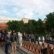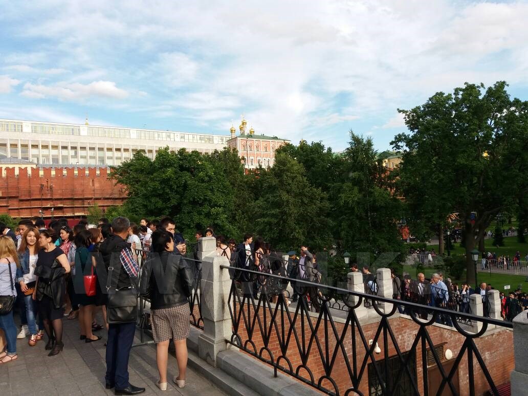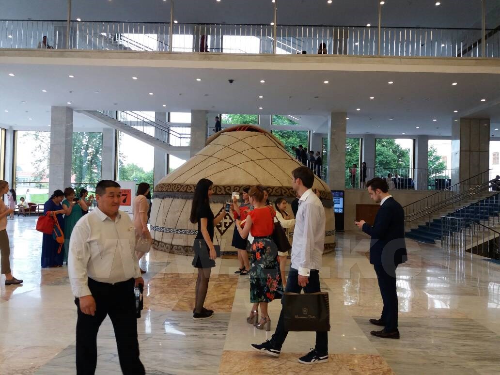Еще до начала мероприятия на площади у входа в Кремлевский дворец многолюдно. Много представителей кыргызской диаспоры. Для них мероприятие стало еще одной хорошей возможностью встретиться со старыми друзьями и знакомыми.