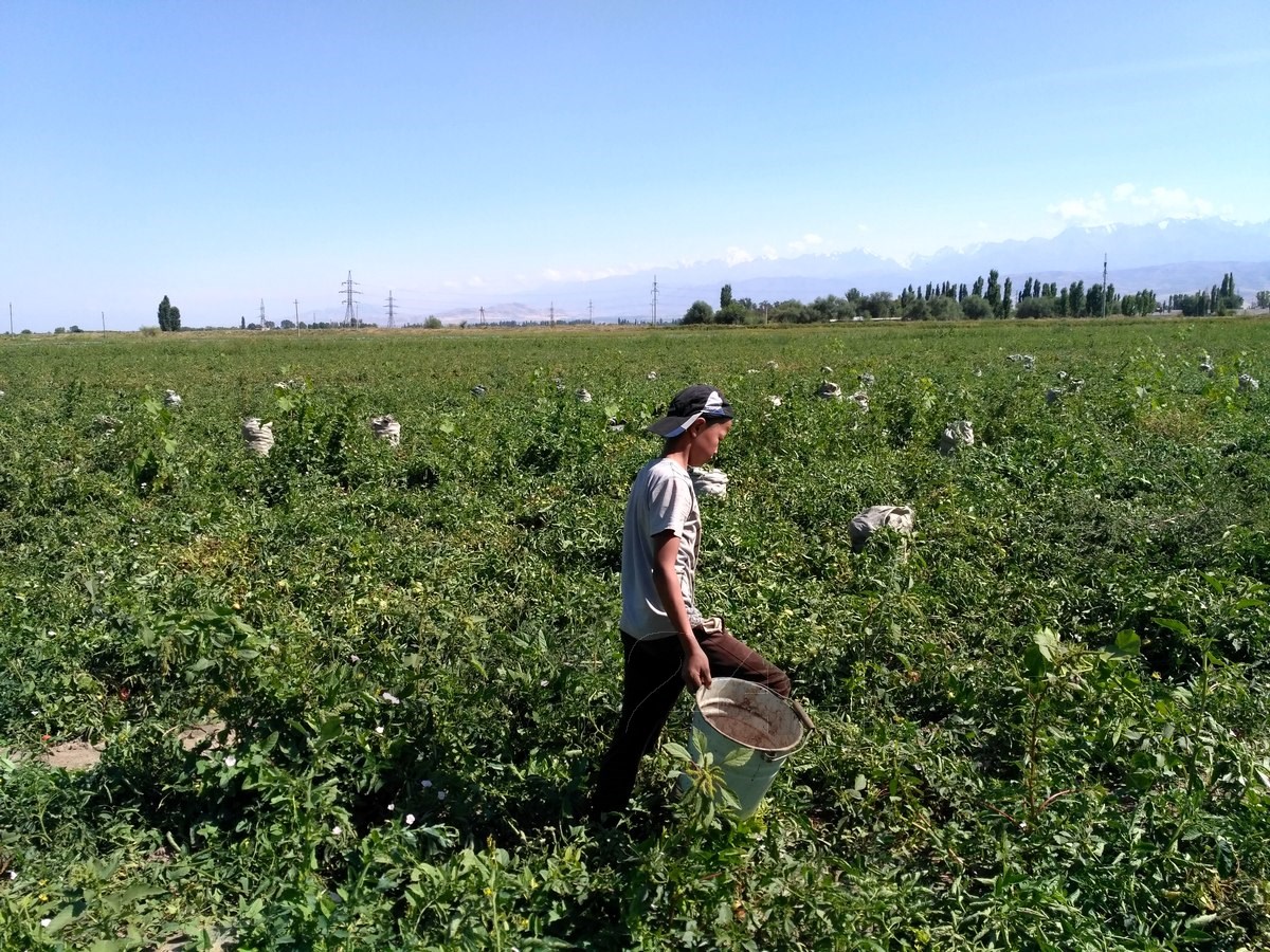 Недалеко от Бишкека, в Сокулукском районе на восточной окраине села Селекция, раскинулись обширные поля. Тут и там виднеются силуэты людей, которые словно плывут по этим полям в океане густой зелени. От палящего солнца их оберегают широкоплые шляпы или платки. Это женщины и подростки, собирающие помидоры. Руководит процессом Сульмане Леджеров, или просто Миша, как все его называют. «Он здесь самый главный», — и в шутку и всерьез говорят крестьяне. Журналист ИА «24-kg.com» провел с ними целый день, чтобы из первых уст узнать, как живется тем, кто целыми днями «пашет в поле».
