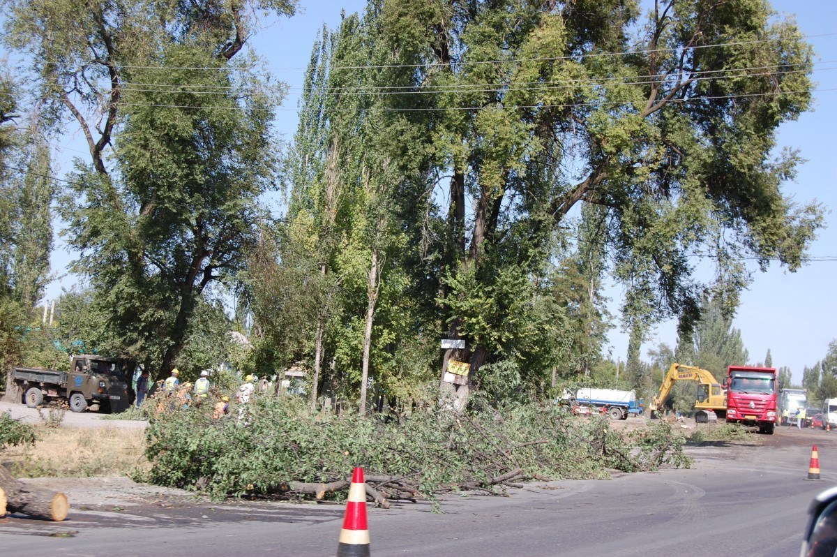 Подрядчик, выполняющий реконструкцию трассы Бишкек — Кара-Балта, начал вырубать деревья в Жайылском районе. Работы начались в селе Петропавловке.