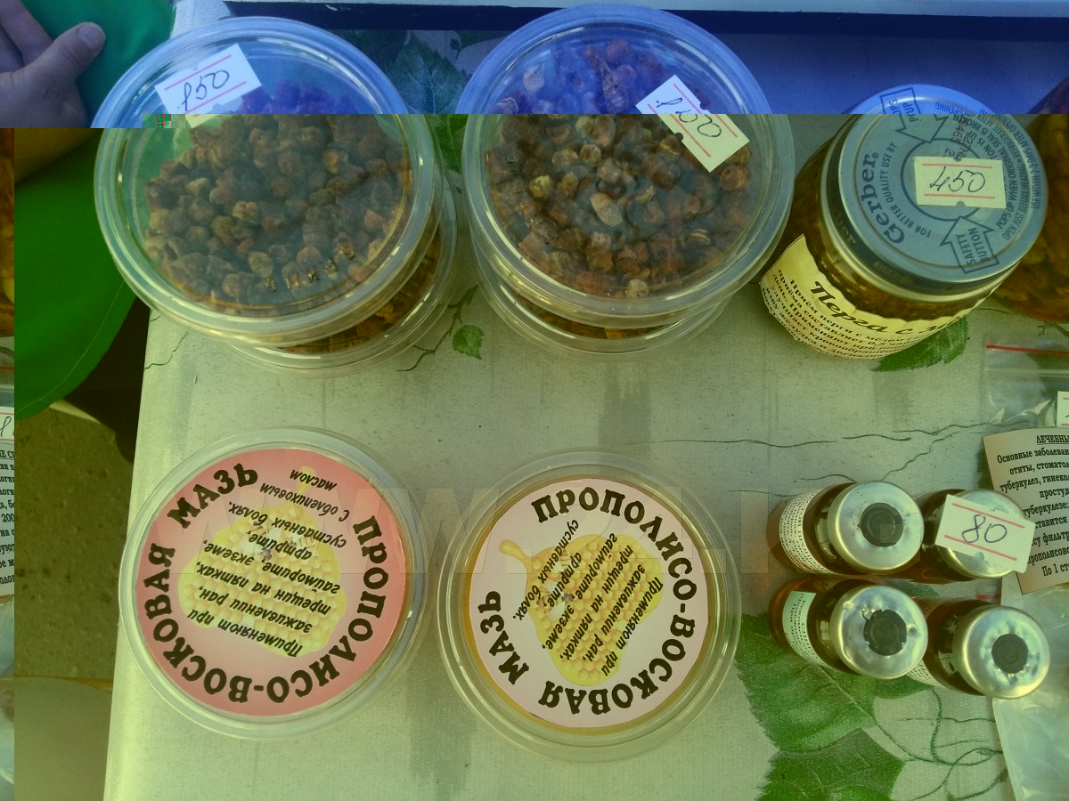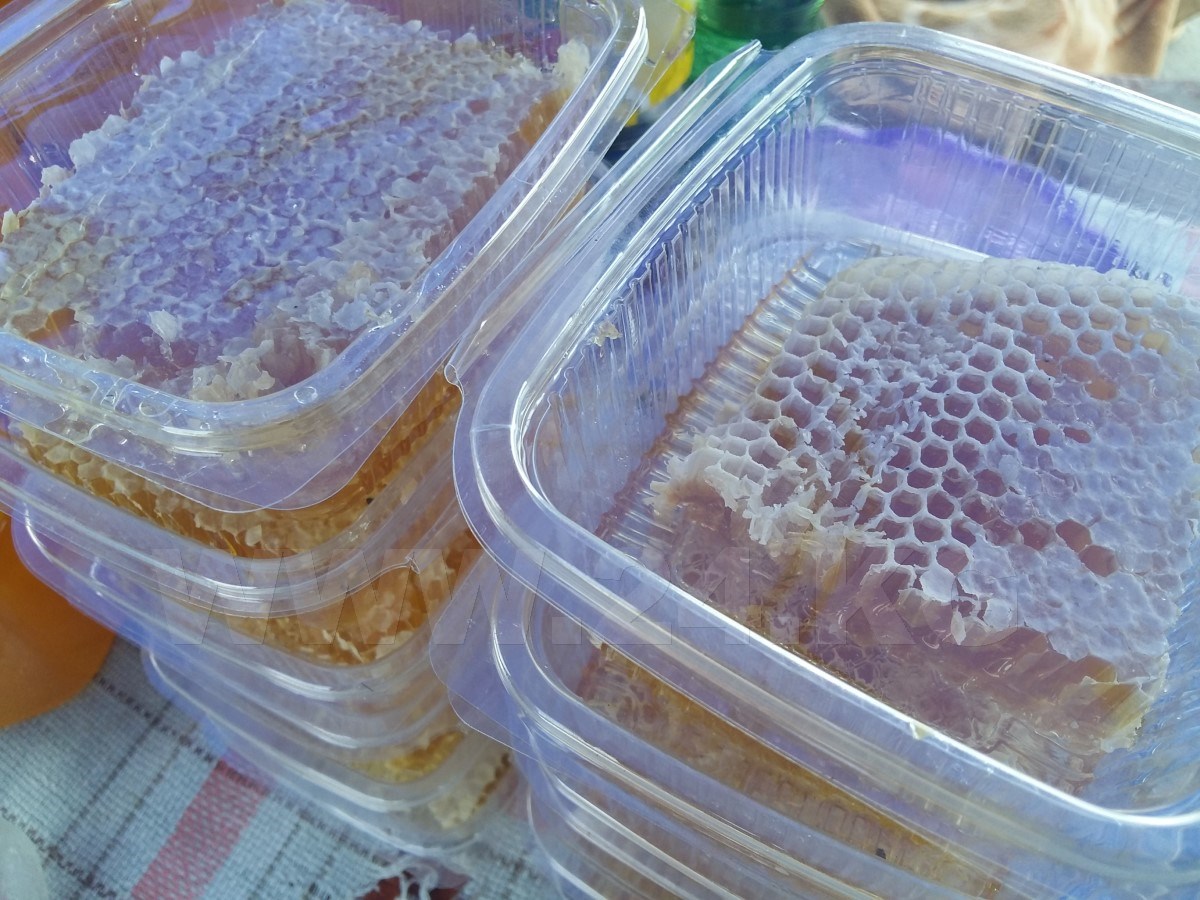 Но купить на ярмарке можно не только мед. Пчеловоды приготовили богатый ассортимент пчелиной продукции: пыльцу, пергу, воск и свечи из него, соты и маточное молочко.
