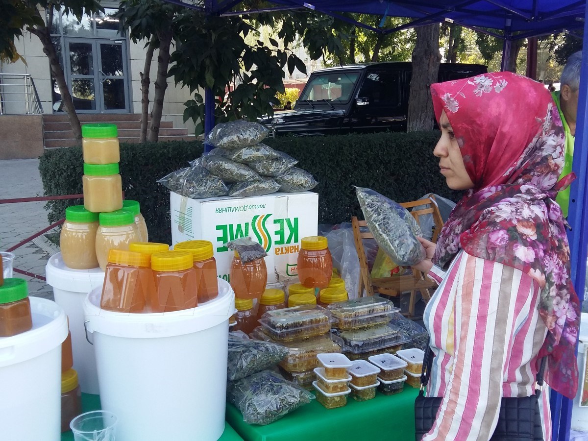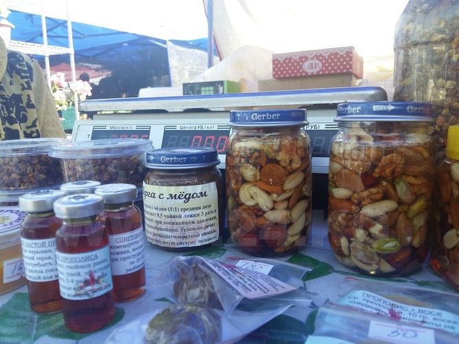 «Мы с супругом, – говорит его жена Ирина, – почти 30 лет занимаемся пасекой. Сами мы из Токмака, а пасека наша расположена в горах Шамши. Мы впервые принимаем участие в ярмарке в Бишкеке. В основном мы работаем в селе Бостери на Иссык-Куле, где алма-атинская клиентура хорошо разбирает нашу продукцию».
