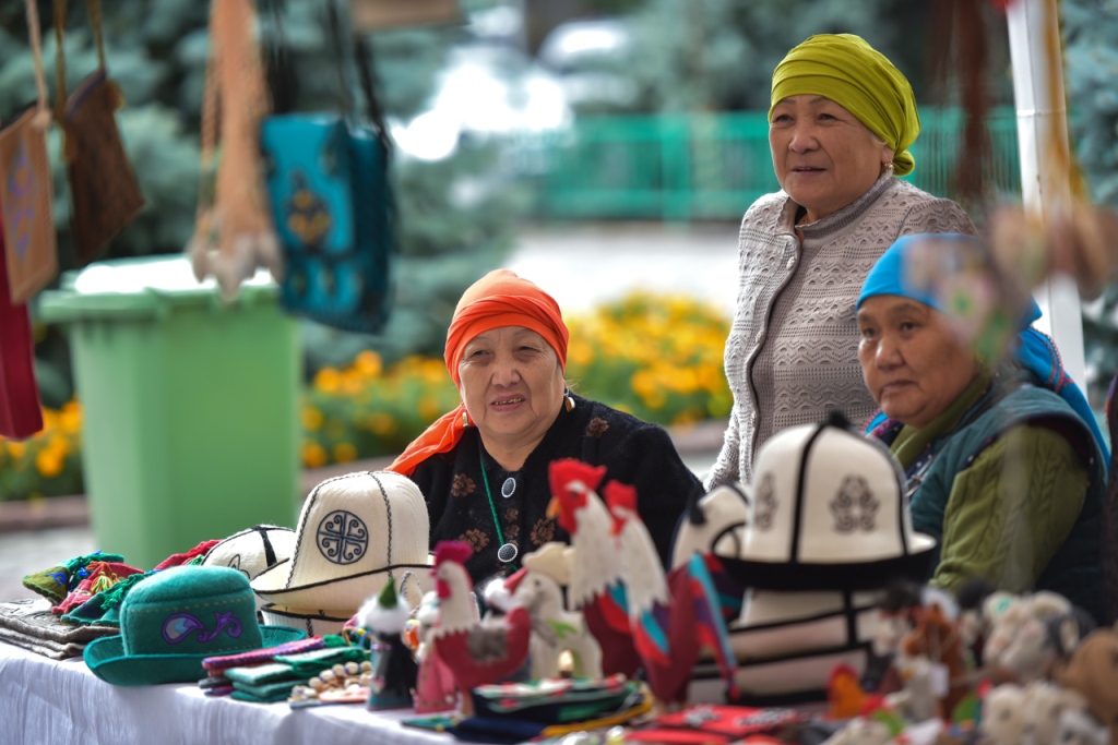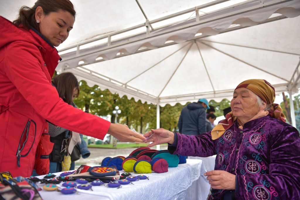 По ее данным, пожилые люди столицы, Иссык-Кульской и Чуйской областей представили изделия из войлока, шерсти, пряжи, национальные сувениры и сельхозпродукцию.