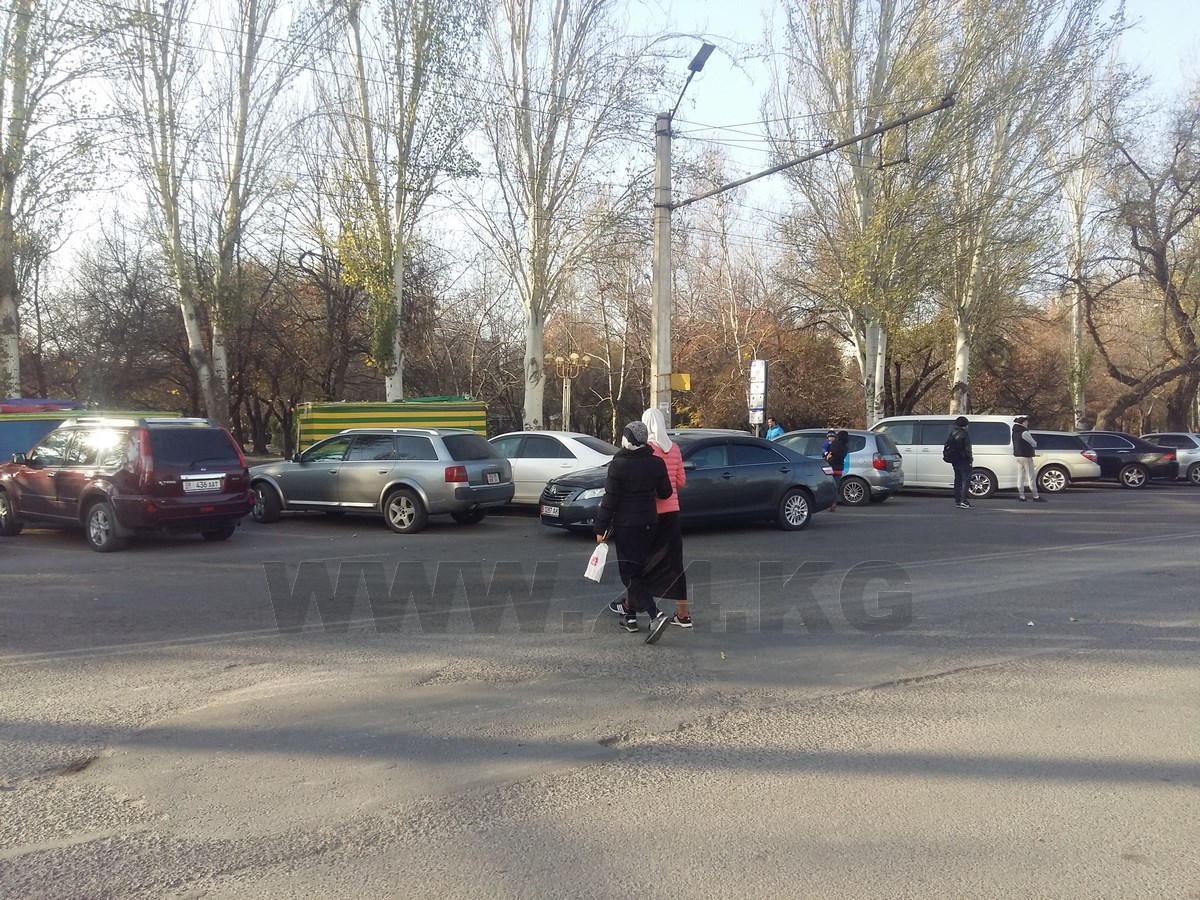 Или вот: всем известный рынок «Мадина», возле которого находятся и пешеходный переход, и светофор, но по ним дорогу никто не переходит. Плотным потоком пешеходы движутся по всей трассе, начиная от проспекта Чуй. А ведь там постоянно стоит патрульная машина и тормозит тех водителей, кто повернул на красный свет.