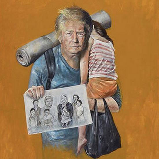 Сирийский художник Абдалла аль-Омари нарисовал мировых лидеров в образе беженцев. Он объединил картины в цикл «Серия уязвимости», написали «Ведомости».