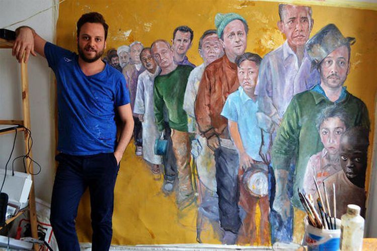 Абдалла аль-Омари родился в Дамаске, сейчас живет в Бельгии. Он решил нарисовать мировых лидеров в образе беженцев, так как убежден, что каждый человек и каждая страна уязвимы.