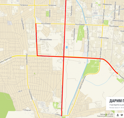 — на проспекте Жибек Жолу (от улицы Фучика до бульвара Молодой Гвардии);