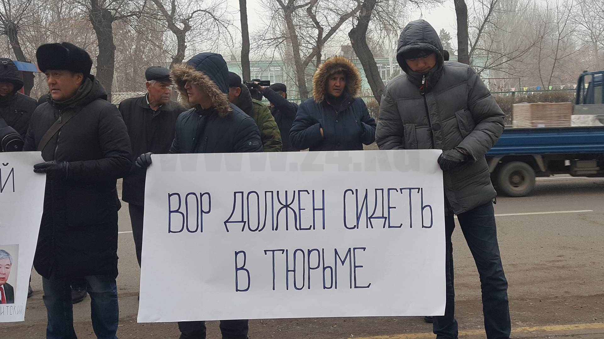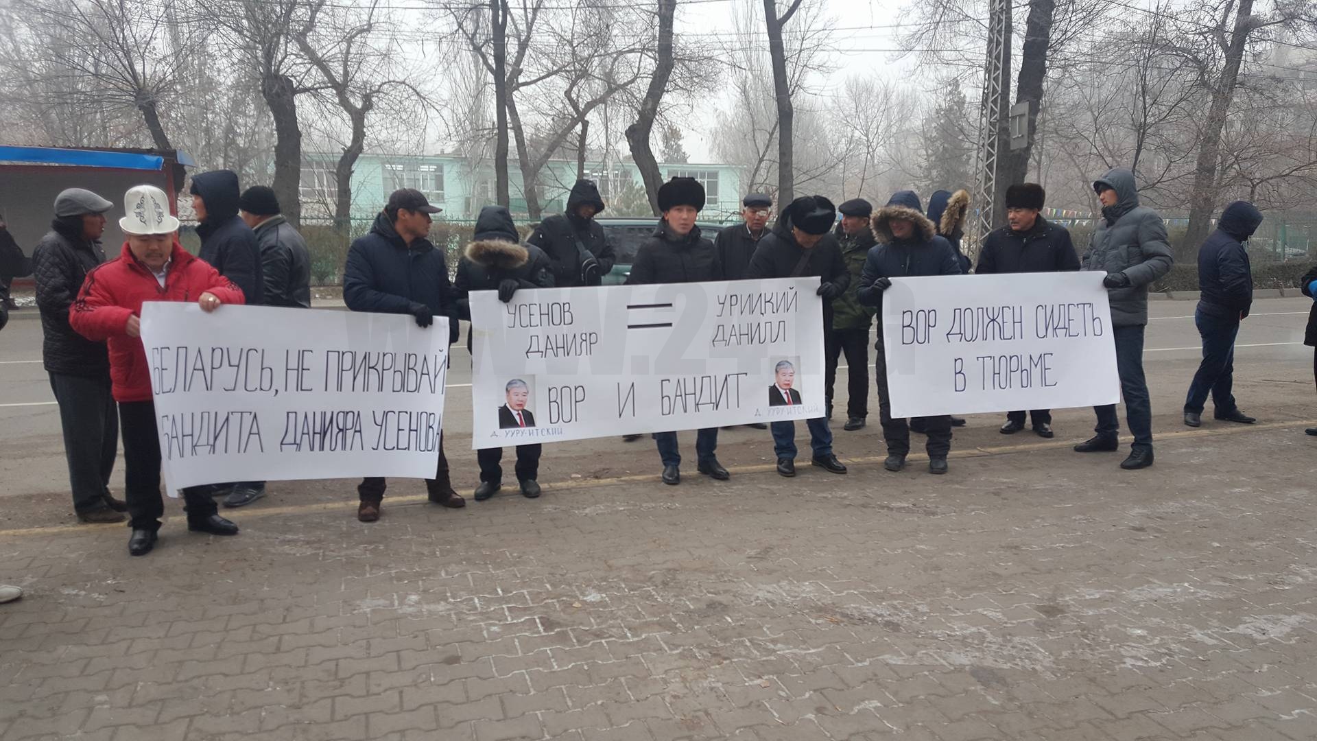 В Бишкеке возле Посольства Республики Беларусь проходит митинг общественного объединения «Айкол Ала-Тоо». Участники акции протеста просят выйти к ним представителя дипломатического ведомства.