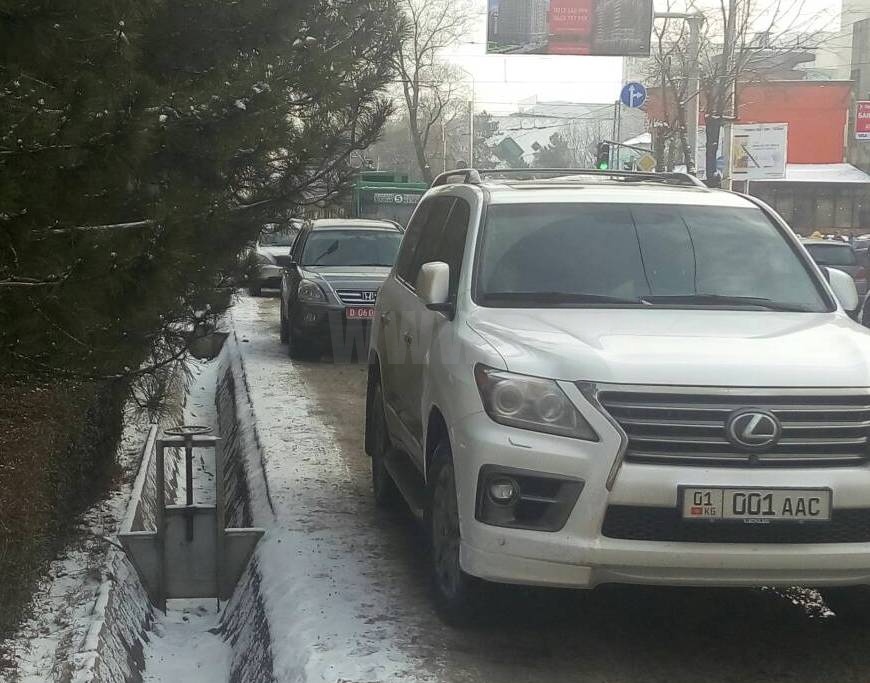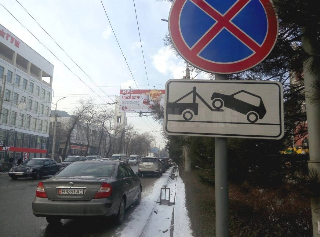 Машины забирают с проезжей части. На асфальт ведь ничего не приклеить. Кроме 1 тысячи 350 сомов, за услугу эвакуации нарушителю ПДД придется заплатить штраф за неправильную парковку в 1 тысячу сомов.