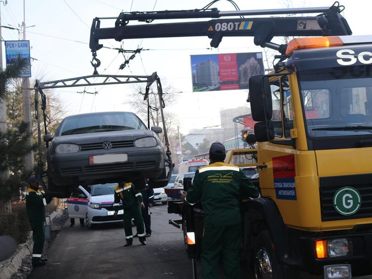 Эвакуировать машины в принудительном порядке обещали еще с апреля 2017 года. Но сделать это удалось лишь в начале 2018-го. По крайней мере, о запуске проекта заявили в ГУОБДД МВД КР и даже продемонстрировали фото погрузки машины, оставленной на проспекте Чуй у ЦУМа.