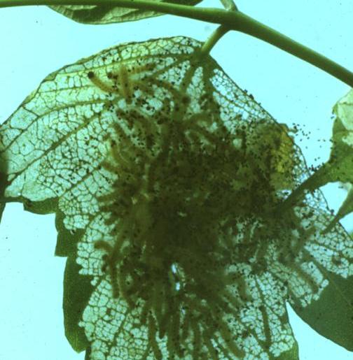 Всего за одну ночь гусеницы второго поколения, дружно перелинявшие на старший возраст (обычно у этого вида всего шесть личиночных возрастов), могут объесть значительную часть кроны большого дерева.