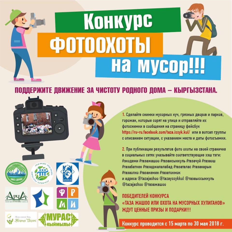 В рамках национальной кампании «Таза жашоо» в Кыргызстане объявлена фотоохота на мусор. Самым активным обещают призы и подарки. Об этом сообщается на официальной странице кампании в сети Facebook.