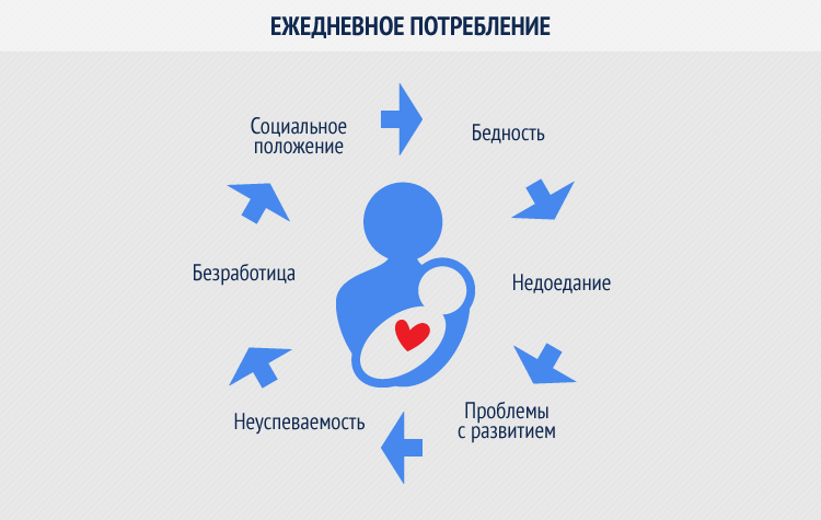 На питание ребенка, по данным Нацстаткома, бедные семьи тратят около 1 тысячи 800 сомов в месяц, или 60 сомов в день. Но при этом дети не получают достаточного количества полезных веществ. Ощутимее стала нехватка белков и жиров — практически в два раза меньше рекомендуемой нормы.