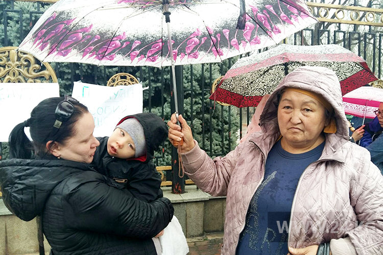 В Бишкеке на пикет к «Белому дому» вышли родители детей с ограниченными возможностями здоровья. Они требуют признать труд матерей по уходу за ребенком с инвалидностью и повысить размер социального пособия.