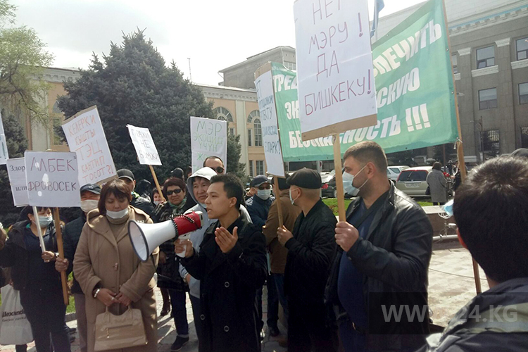 Жители Бишкека, собравшиеся на флэшмоб «Мы задыхаемся» у здания мэрии, требуют отставки градоначальника Албека Ибраимова. Они обвиняют власти в коррупции.