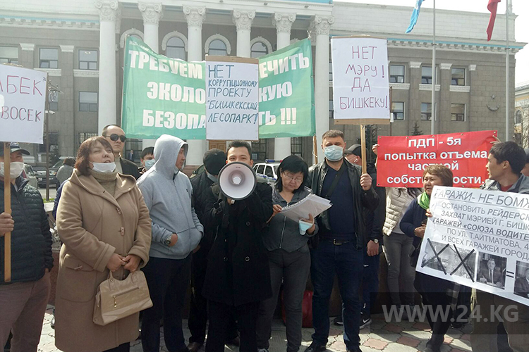 «Власти должны нести ответственность за свои действия перед горожанами. Более 100 гектаров вывели из территорий парков и покушаются на другие. Хватит издеваться над детьми! Или они надеются уехать, как Акаев или Бакиев?» — заявил он.