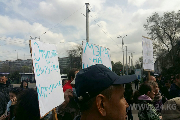 «Сегодня идет массовая вырубка деревьев, город загазован, а власти погрязли в коррупции», — заявил на митинге председатель Партии зеленых Эркин Булекбаев.