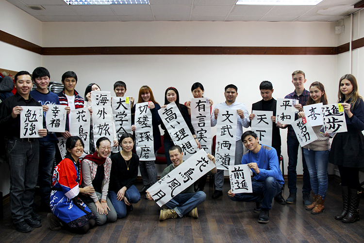 Больше всего сил было уделено курсу каллиграфии. В японском центре открыт кружок, который посещает примерно 10 человек, где мы еженедельно тренируемся. Я также многому научилась у членов кружка, мы вместе задумывались о том, в чем суть японской культуры. Время, проведенное со студентами и с людьми, работающими в различных сферах, давало мне новые силы. Я смогла узнать о кыргызской культуре, взглядах граждан Кыргызстана, слушая впечатления учеников об искусстве каллиграфии, наблюдая за их успехоами, радуясь вместе с ними, когда ученик смог изобразить свой любимый иероглиф.