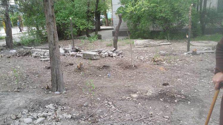 «По улице М.Алыбаева есть сад. 2 апреля 2018 один из жителей дома с согласия домкома и без разрешения наняли работников и спилили деревья. Как оказалось, автовладельцы вступили в сговор и решили сделать парковку. Общего собрания жильцов не проводили», — пишет она.