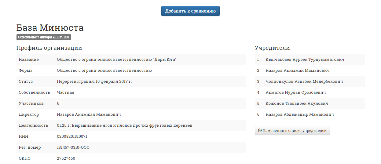 У Нурбека Кыпчакбаева есть еще одно охранное агентство «Скорп», которое получает от государства больше, чем платит налогов. В 2017 году оно заплатило 15 тысяч сомов налогов, а из бюджета получило 644,5 тысячи сомов.