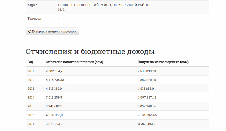 В 2016 году из бюджета «Гарант Проект» получил 21,2 миллиона сомов, в 2017-м — 11,2 миллиона сомов. При этом налоговые отчисления не превысили 5 миллионов сомов.