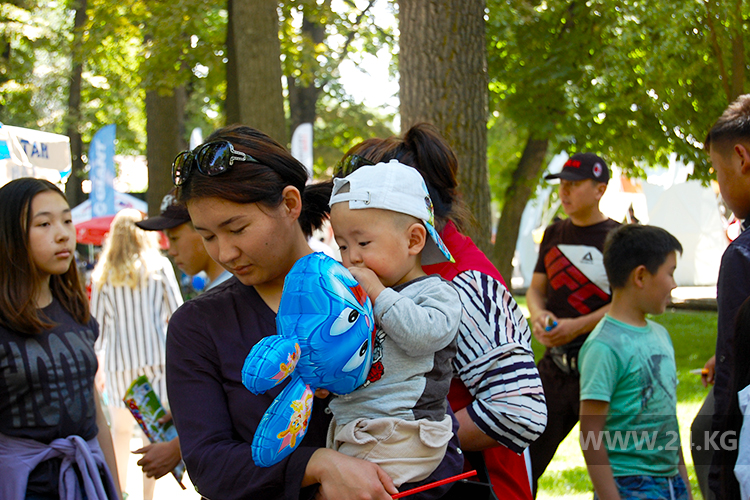 В Дубовом парке Бишкека не протолкнуться. На городской праздник «Баластан», подготовленный мэрией к Международному дню защиты детей, пришло множество гостей и желающих отдохнуть.