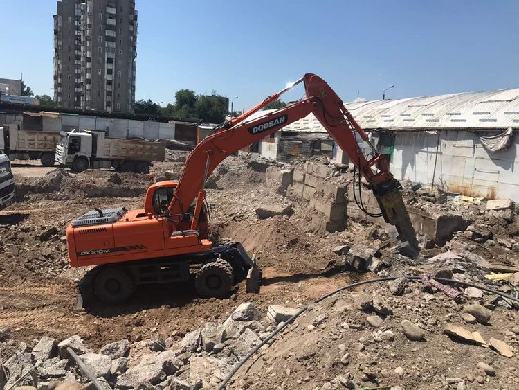 На Ошском рынке роют котлован под новый торговый объект вместо сгоревшего здания «Берекета». Об этом сообщили в пресс-службе мэрии Бишкека.