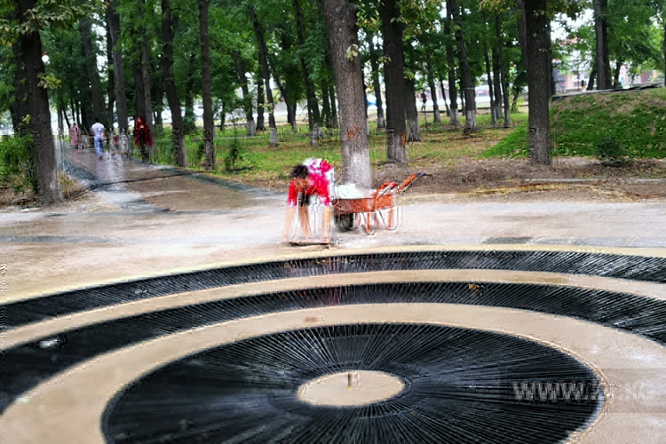 А в парке «Молодежный» кипит работа — рабочие заканчивают детскую площадку, укладывают брусчатку. На месте застаем заместителя акима Первомайского района Руслана Шарапова. Говорит, планировали сдать объект к сроку, но технадзор акимиата выявил некоторые дефекты, которые сейчас устраняет подрядчик. Дождливая погода показывает, где изначально неправильно уложили брусчатку. Появится в парке и первый в столице сухой фонтан. Монтажные работы уже завершены. Как и на скалодроме.