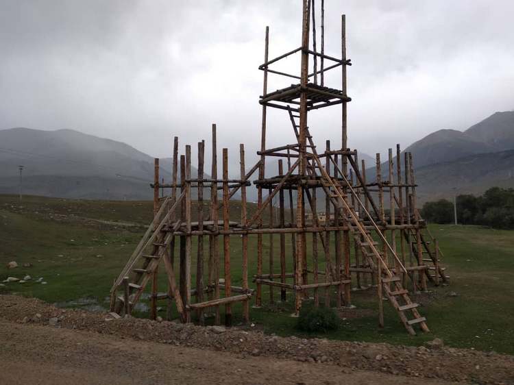В урочище Кырчын подготовительные работы в самом разгаре. Сейчас монтируют сцену и ставят те самые туалеты, которые наделали много шуму. Правда, посторонних на территорию не пускают. На воротах надпись, что въезд запрещен из-за строительных работ.