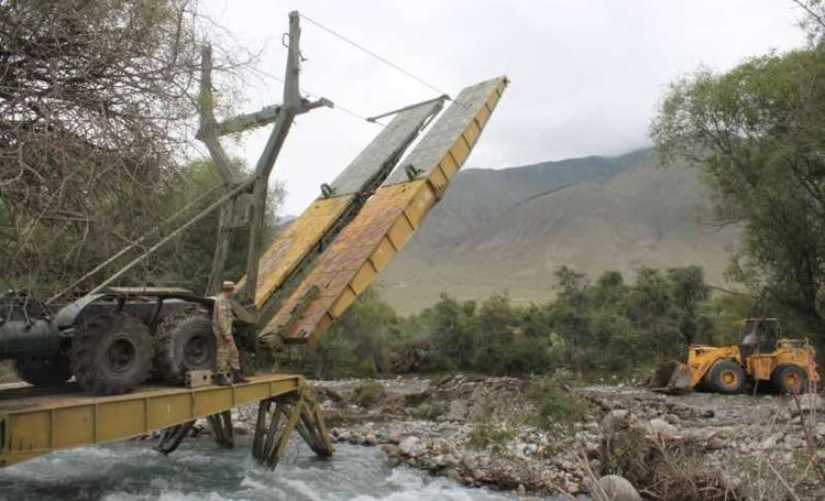 Военные инженеры войсковых частей 73809 и 20636 Сухопутных войск, несмотря на сложность местности и быстрое течение реки, установили мост в этногородке Кырчын. Он может пропускать колесную и гусеничную технику с нагрузкой до 60 тонн.