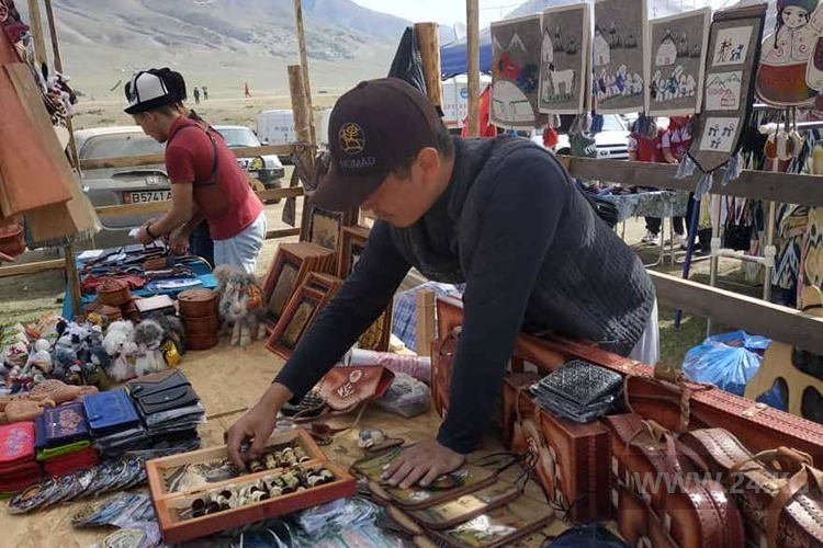 В рамках III Всемирных игр кочевников на джайлоо Кырчын развернули этнобазар. Он стилизован под старинный рынок: вместо крыш над прилавками натянуты льняные полотна.