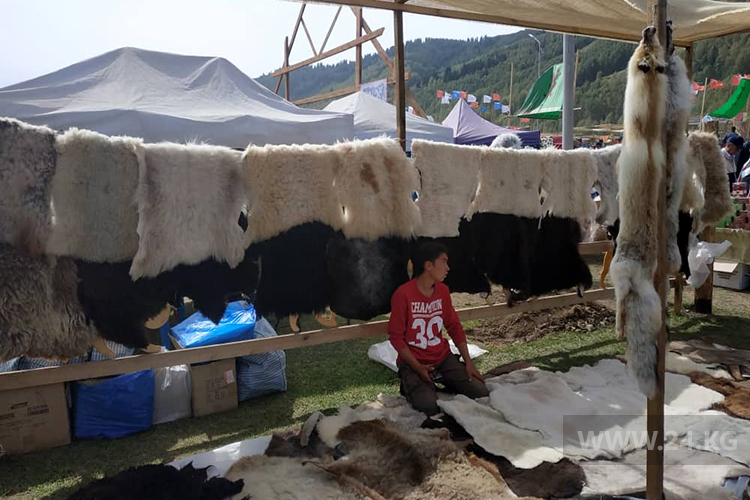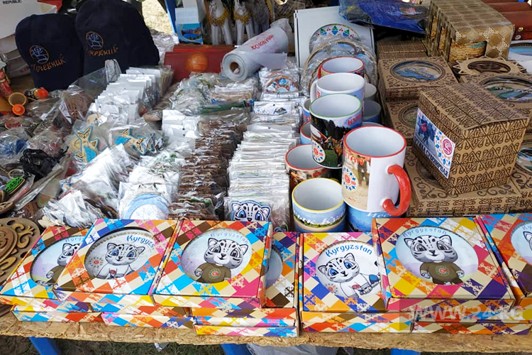 Чего тут только нет: и национальная одежда, и меха, и изделия из кожи, дерева, керамики. Уйти без покупки вряд ли удастся. Вот и мы не удержались, приобрели магниты и тарелочки с изображением снежного барса — символа III ВИК. Продавец, член Союза народных мастеров КР Римма Исакова, признается, что раскупают их очень быстро.