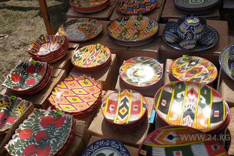У него на прилавке расписная узбекская посуда. Она тоже пользуется спросом как у иностранных гостей, так и у кыргызстанцев.