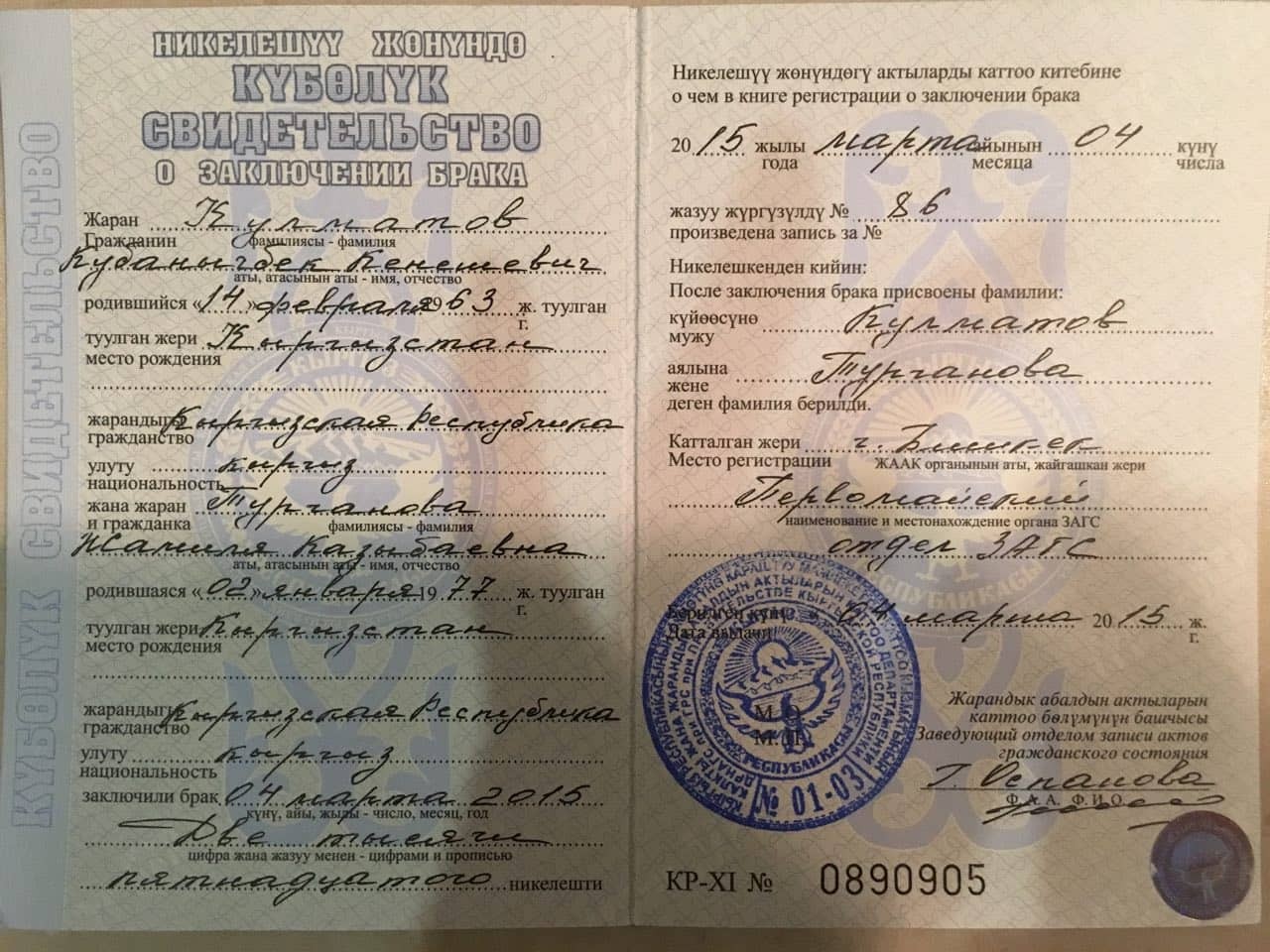 «Из СМИ я узнала, что я не представила в ГКНБ документы, подтверждающие родственные отношения с мужем. У меня ни разу ничего подобного не потребовали. Документы, подтверждающие нашу родственную связь, есть», — сказала Жамиля Кулматова.