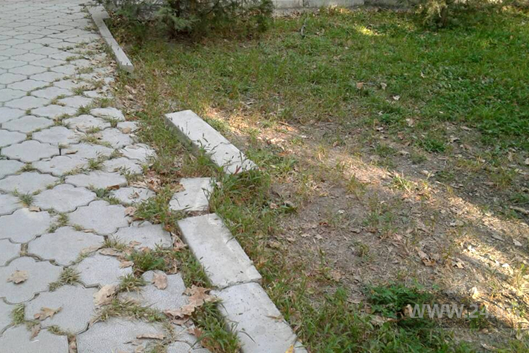 Брусчатка, которой выложены аллеи, повсеместно разрушилась почти сразу же, так как работу выполнили некачественно, но пока еще ее можно восстановить без больших затрат. Бордюры просто бросили, даже не закрепив, так они и валяются в ожидании хозяина. А его в городе нет, судя по такому скверному состоянию.