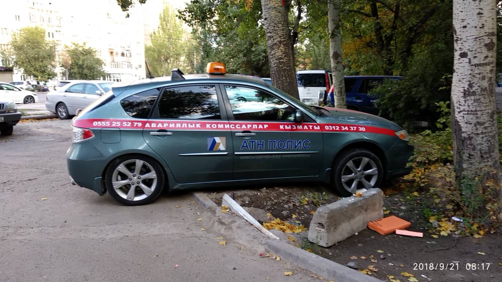 Водитель службы аварийных комиссаров страховой компании «АТН Полис» оставил машину на пересечении улиц Ибраимова и Боконбаева.